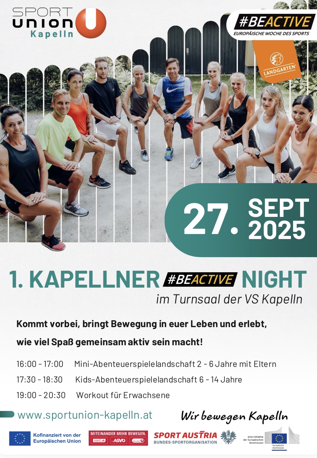 Am 27. September verwandelte sich der Turnsaal der Volksschule Kapelln in ein pulsierendes Zentrum der Bewegung und Begeisterung: Die SPORTUNION Kapelln lud zur ersten #BeActive Night – und rund 100 Besucher:innen aus allen Altersgruppen folgten dem Ruf! 👧🧗♂️ Für die Kinder warteten spannende Abenteuerlandschaften und actionreiche Ninja Warrior-Wettkämpfe, bei denen Mut, Geschick und Spaß im